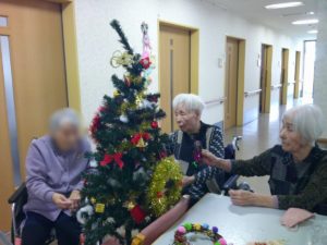 早いものでもうすぐクリスマス( ^ ^♪ ということで、入居者の皆様とクリスマスツリーの飾りつけをしました🎄