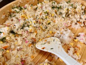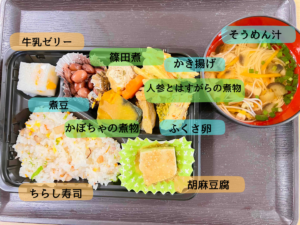 天ぷらのゴーヤと、ちらし寿司の大葉は、入居者様と一緒にご近所の家庭菜園で