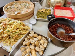 お盆の昼食には立派な手作りの精進料理をいただきました✨