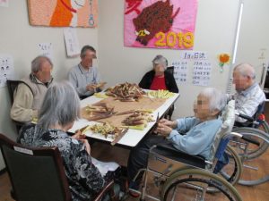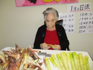 ご入居の皆さんに、たけのこの皮をむいていただきました。