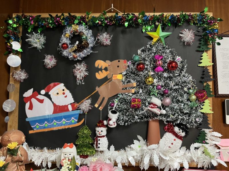 むしかの家 玄関先の壁画がクリスマス仕様になりました⛄❄