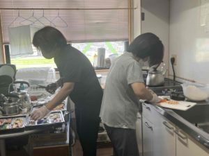 職員がその方に合った食事形態になるように包丁で刻んだり、ブンブンチョッパーで