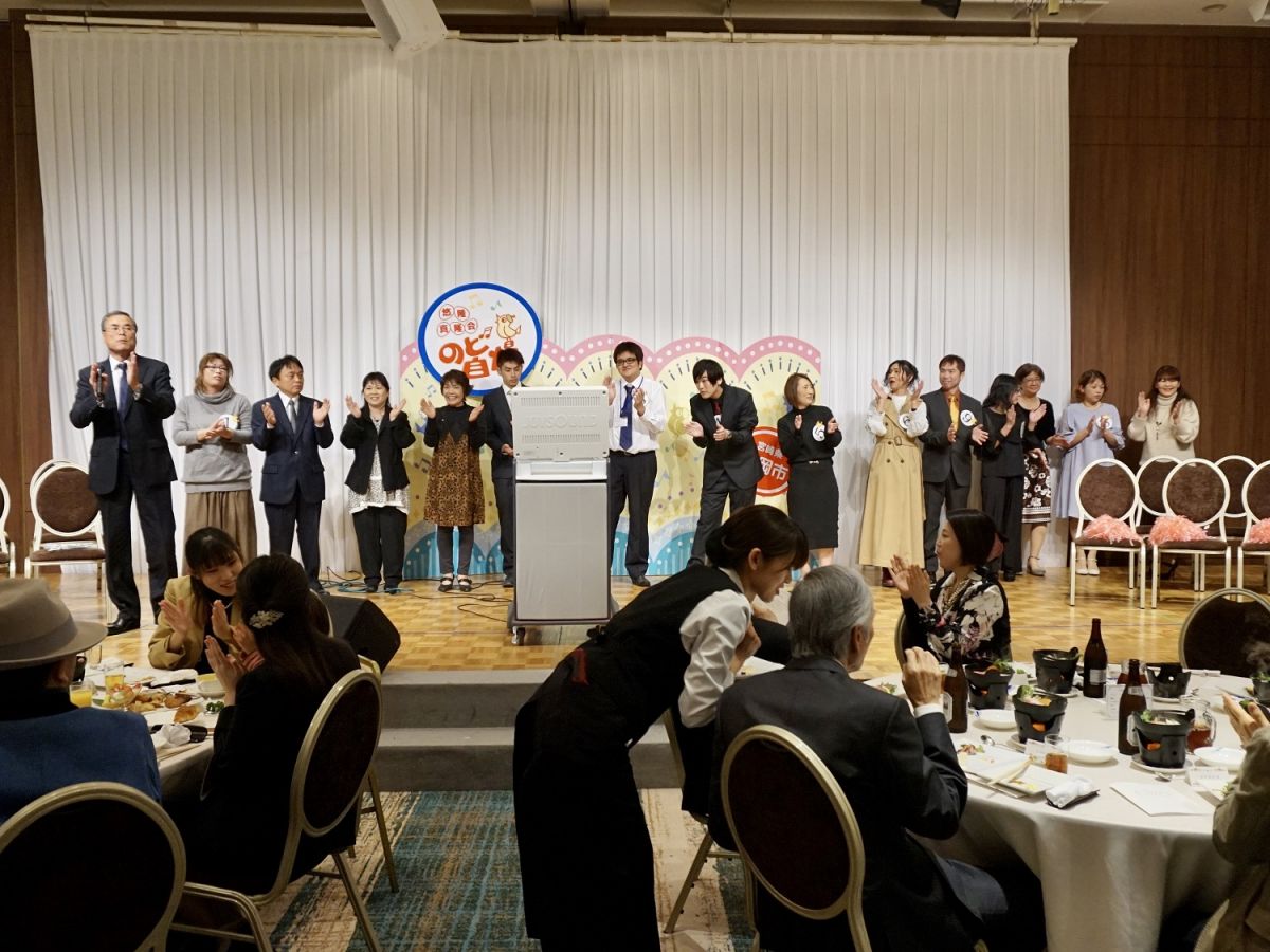 今年も職員によるのど自慢大会が行われました。サプライズゲストに大事マンブラザーズ 立川俊之さんと芋洗坂係長さんにお越しいただき、楽しいステージを披露していただいたり、「それが大事」をみんなで合唱したり、会場はみんな笑顔に包まれ、大変盛り上がりました。