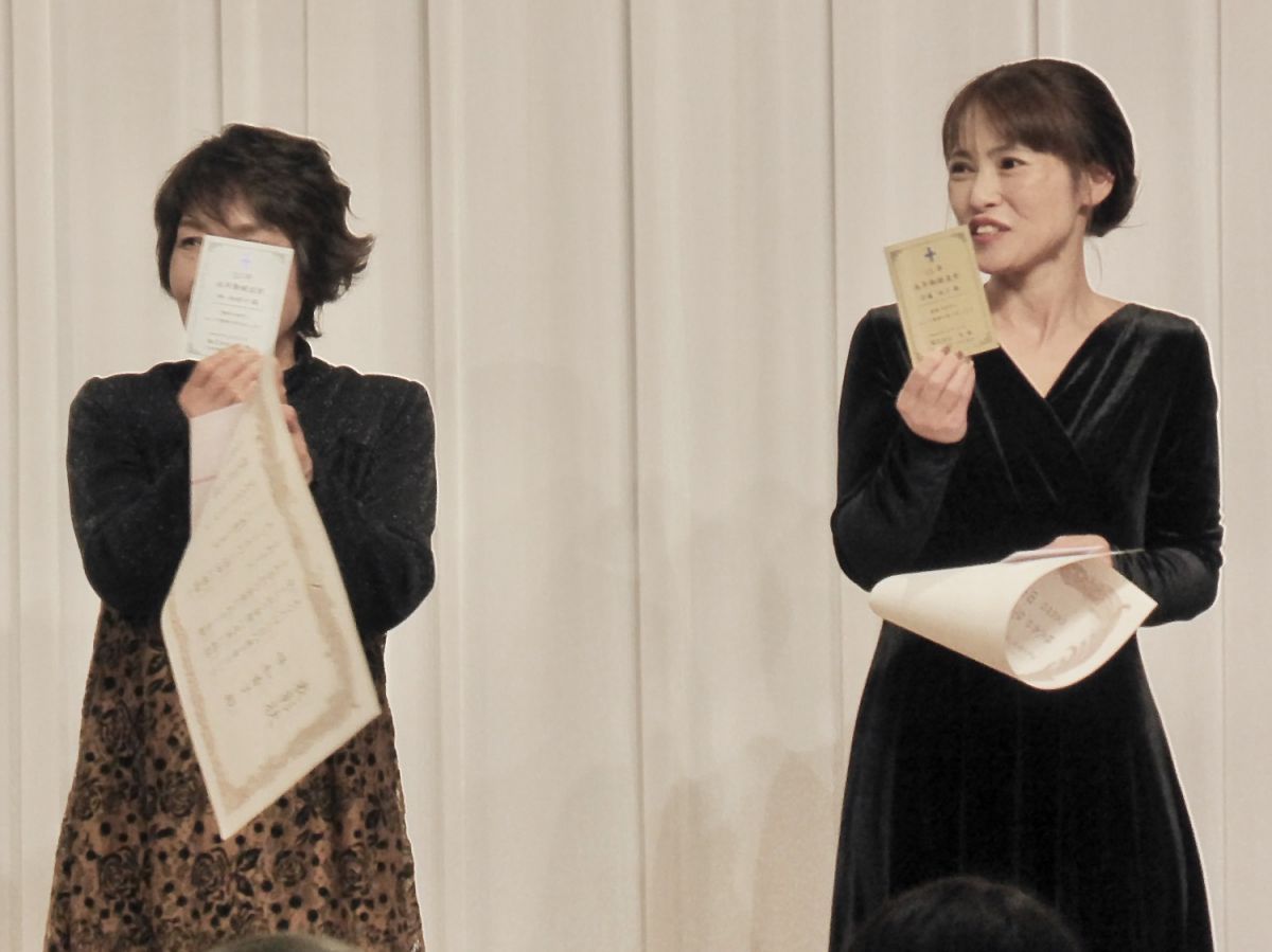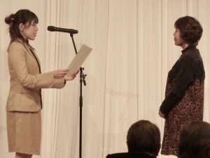 田中真代社長より、賞状とお祝い金、永年勤続者には今年から記念の盾が贈られました。