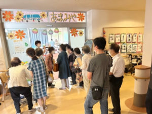 最後に「グループホーム さくらの杜」では、その日の昼食内容をご紹介し、施設内を見ていただきました。壁に飾っている利用者様の絵や書道などの作品もご覧いただき、「綺麗に飾ってあって、明るくて素敵」とのお声もいただきました。実際のサービスの様子も見ていただき、温かく穏やかな雰囲気を感じていただけたのではないかと思います。